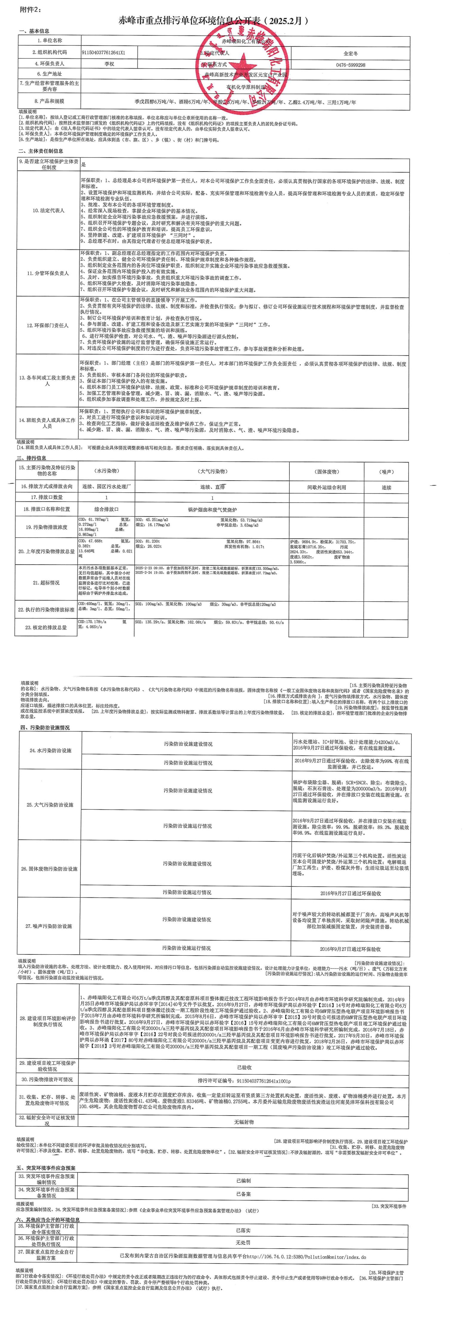 赤峰市重點排污單位環(huán)境信息公開表【2025.02】